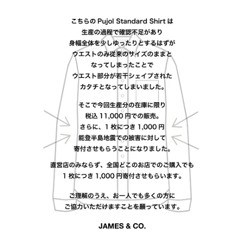 こちらのPujol Standard Shirtは生産の過程で確認不足があり、